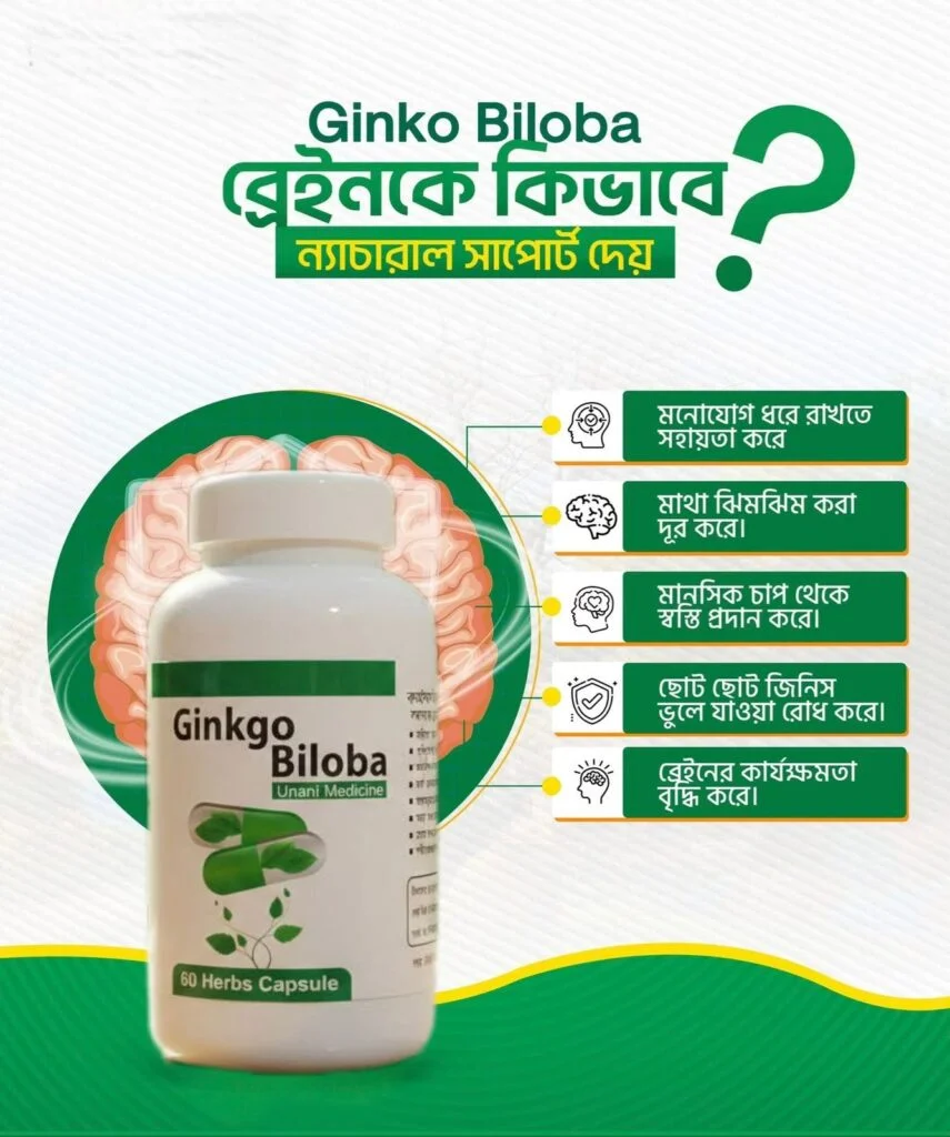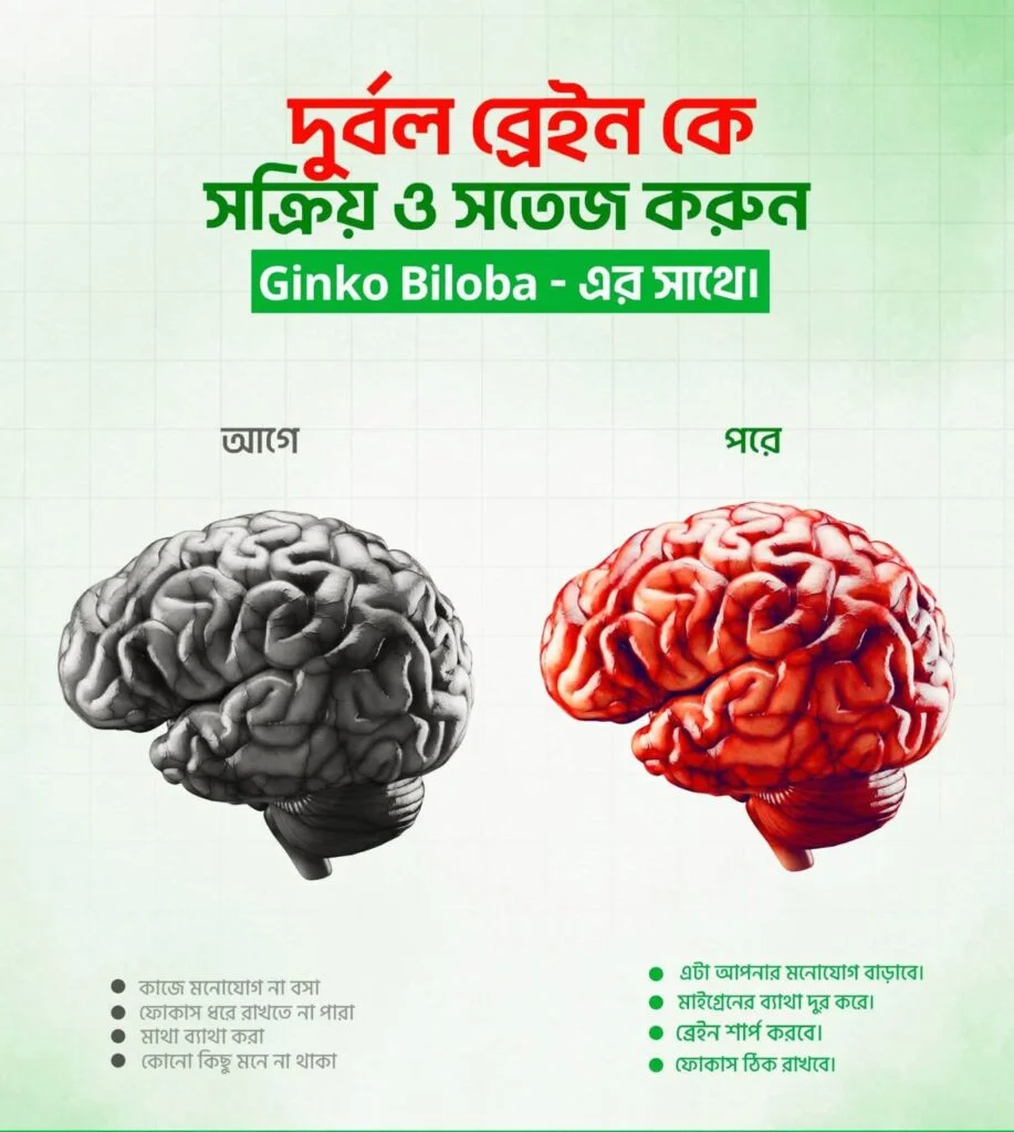 Ginkgo Biloba ব্রেইনের রক্ত সঞ্চালন বাড়িয়ে মনোযোগ, ফোকাস ও ঘুম ঠিক রাখে এবং মাইগ্রেনের সমস্যা দূর করে।